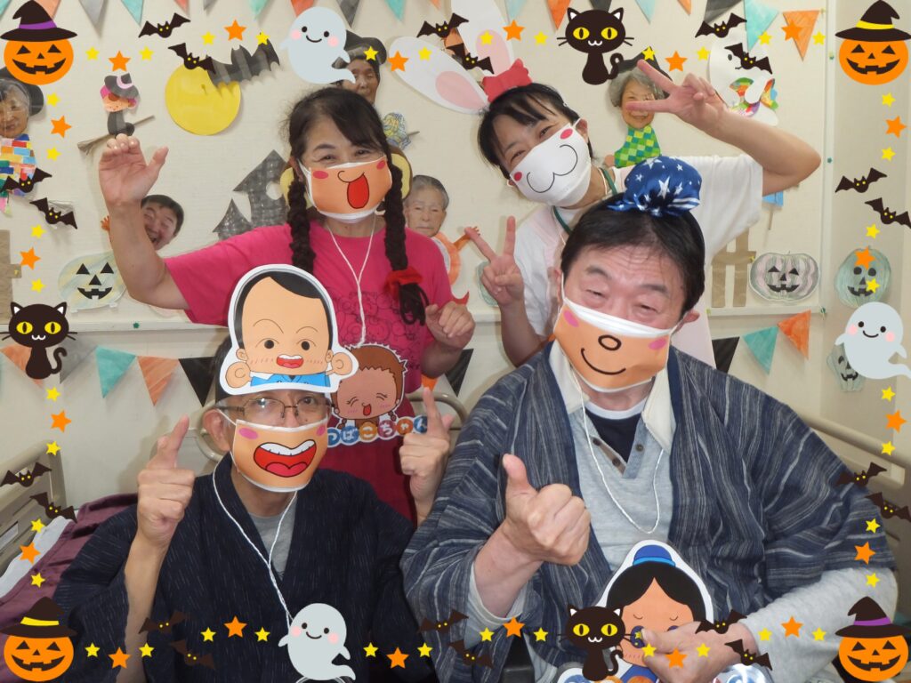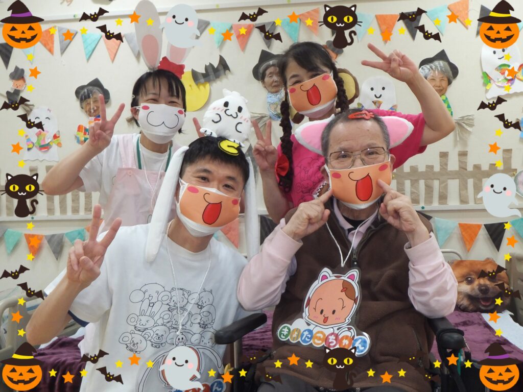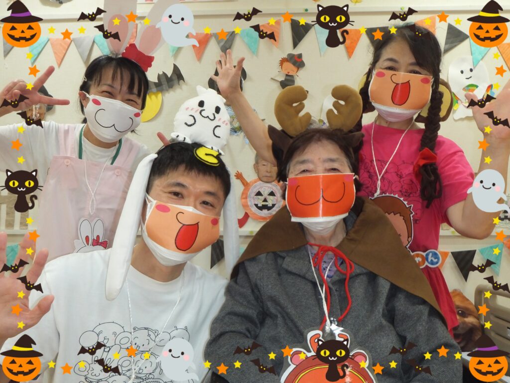 仮装したあとは、スタッフと一緒に記念撮影をしました📸皆さま、笑顔が輝いています(≧▽≦)利用者さまの中にはキャラクターになり切ってポーズを撮られている方(かた)も いらっしゃいました!写る時の掛け声は もちろん『HAPPY HALLOWEEN!(ハッピー ハロウィン!)』