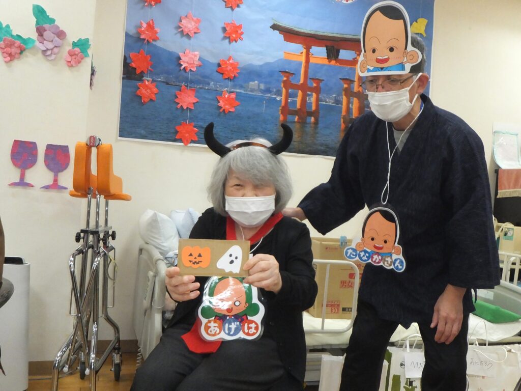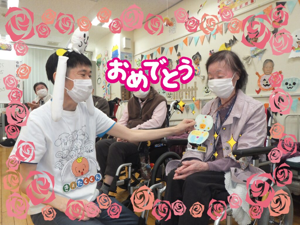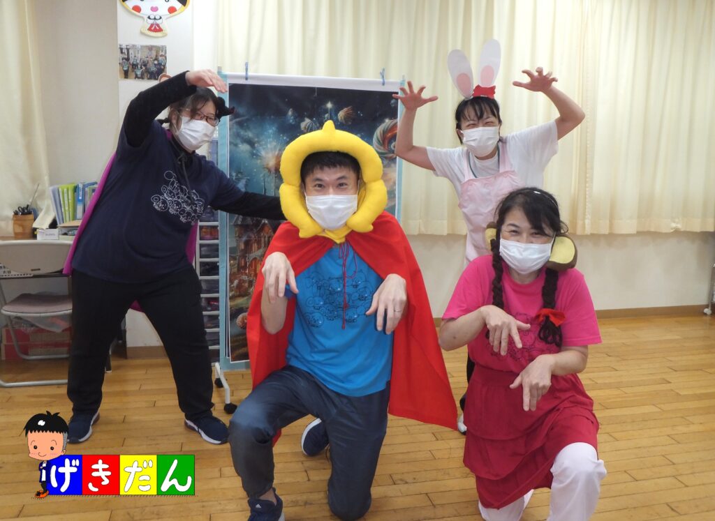 次の演目は『ハロウィン』と言えば これ!そう『仮装』。皆さまにもスタッフ同様、当『よつばケアセンター』のキャラクターに扮して頂きました。仮装して頂くキャラクターはくじにて決めました。利用者さまに よっては、なりたいキャラクターもあったようですが・・・そこは運次第ということで、平等にさせて頂きました(*^▽^*)
