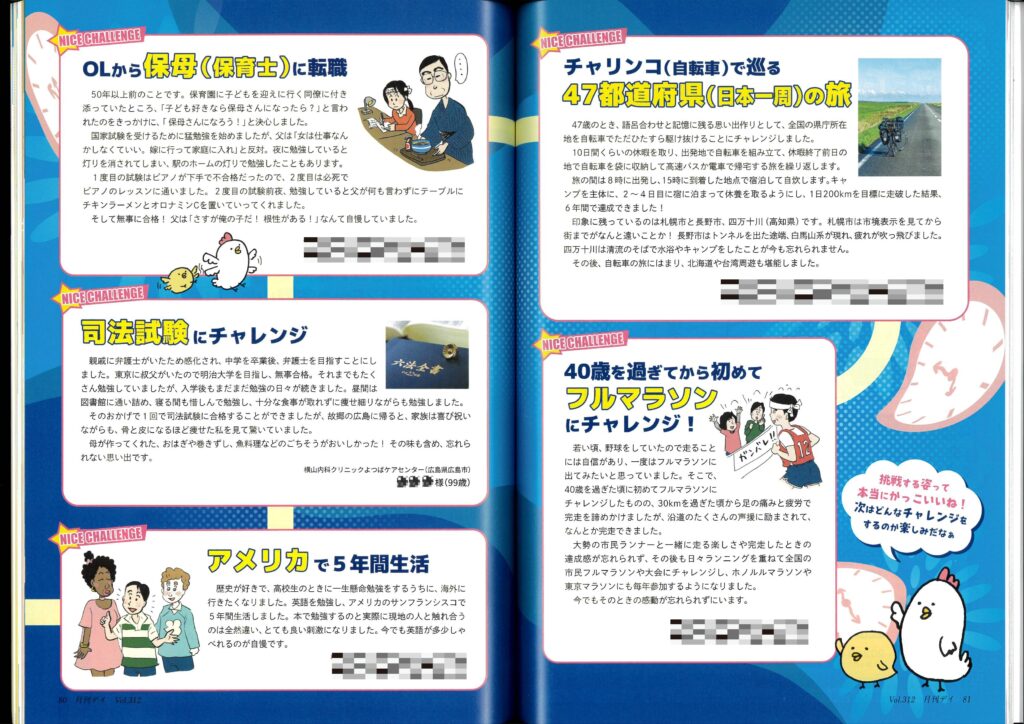 デイケアやデイサービスの運営お助けBOOKとして『月刊DAY(株式会社QOLサービスが発行)』本があります。その本の9月号に【チャレンジ自慢コンテスト】というコーナーがあり、当『よつばケアセンター』の利用者さまが数名応募致しました。すると、なんと!当『よつばケアセンター』の利用者さまの中から見事入賞作品を出された方(かた)が いらっしゃいました(*´▽`*)