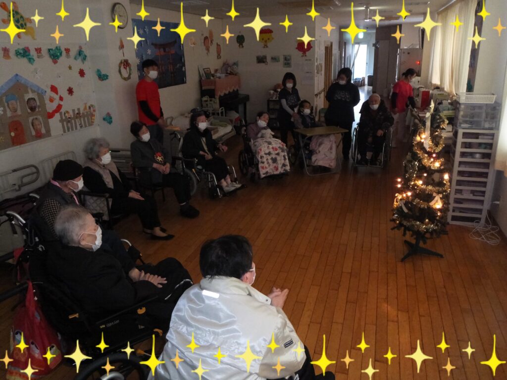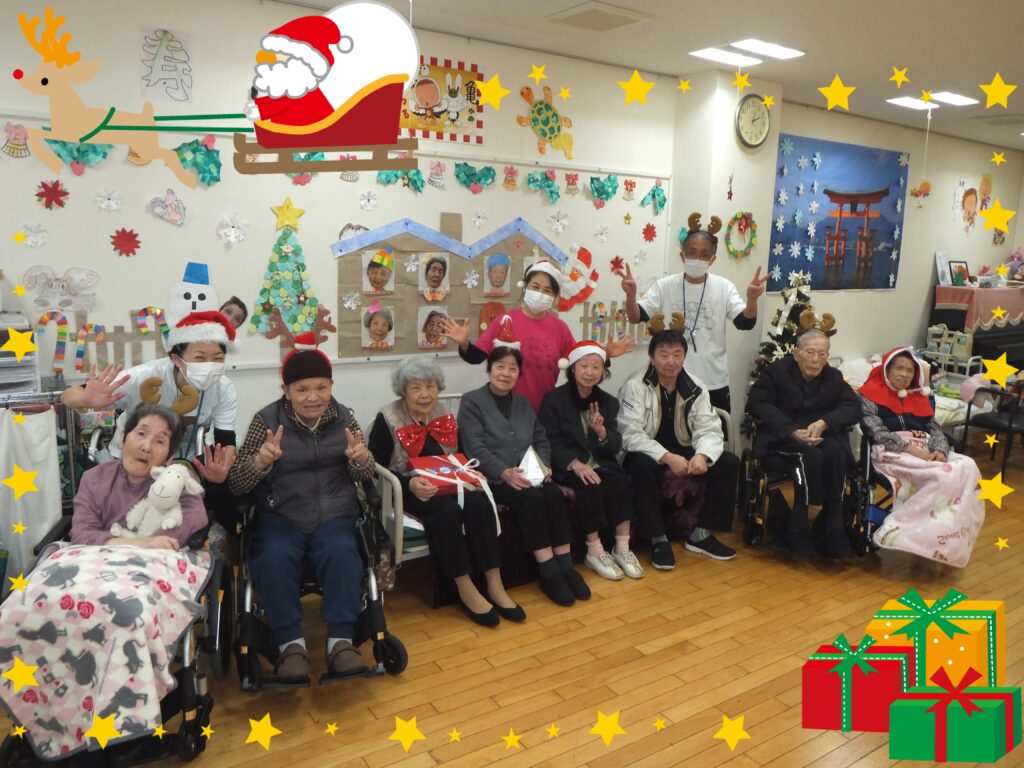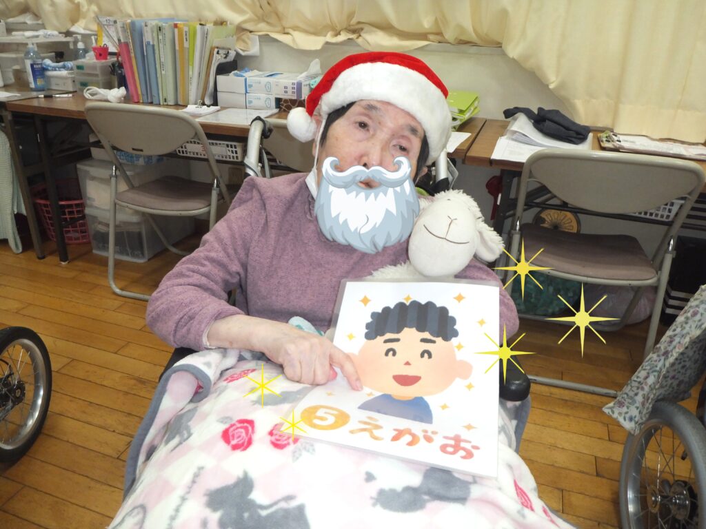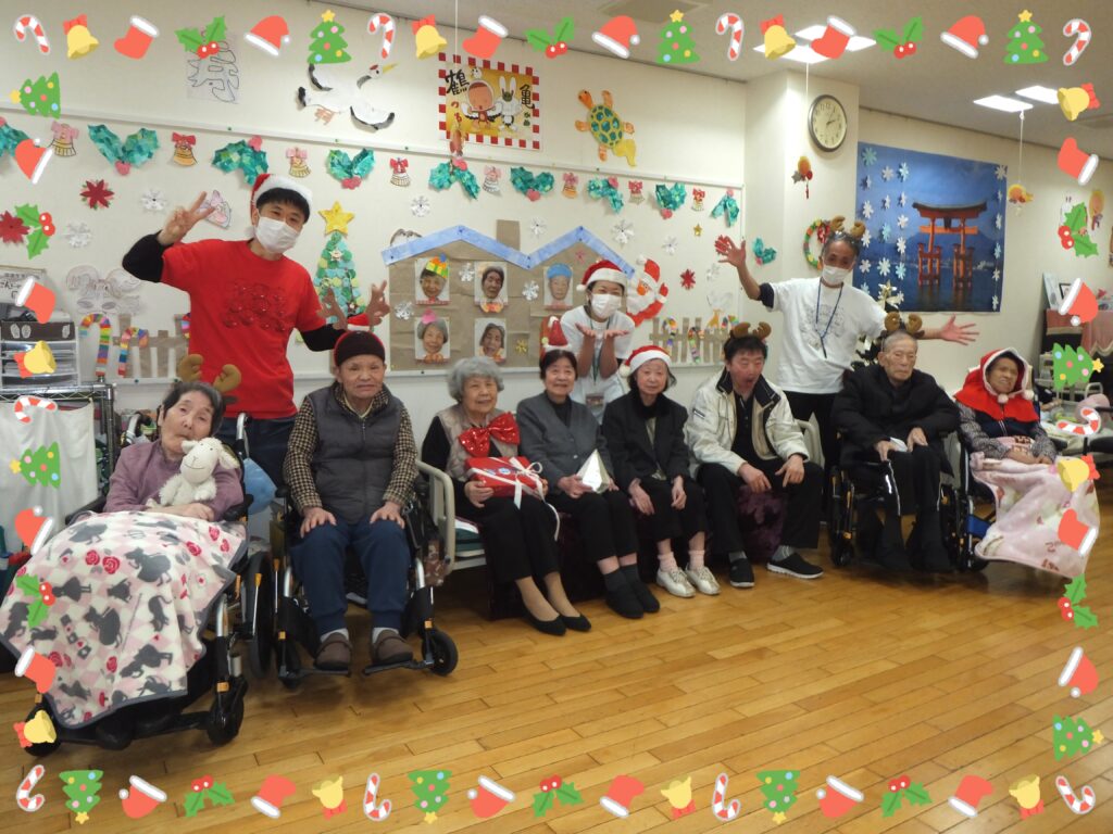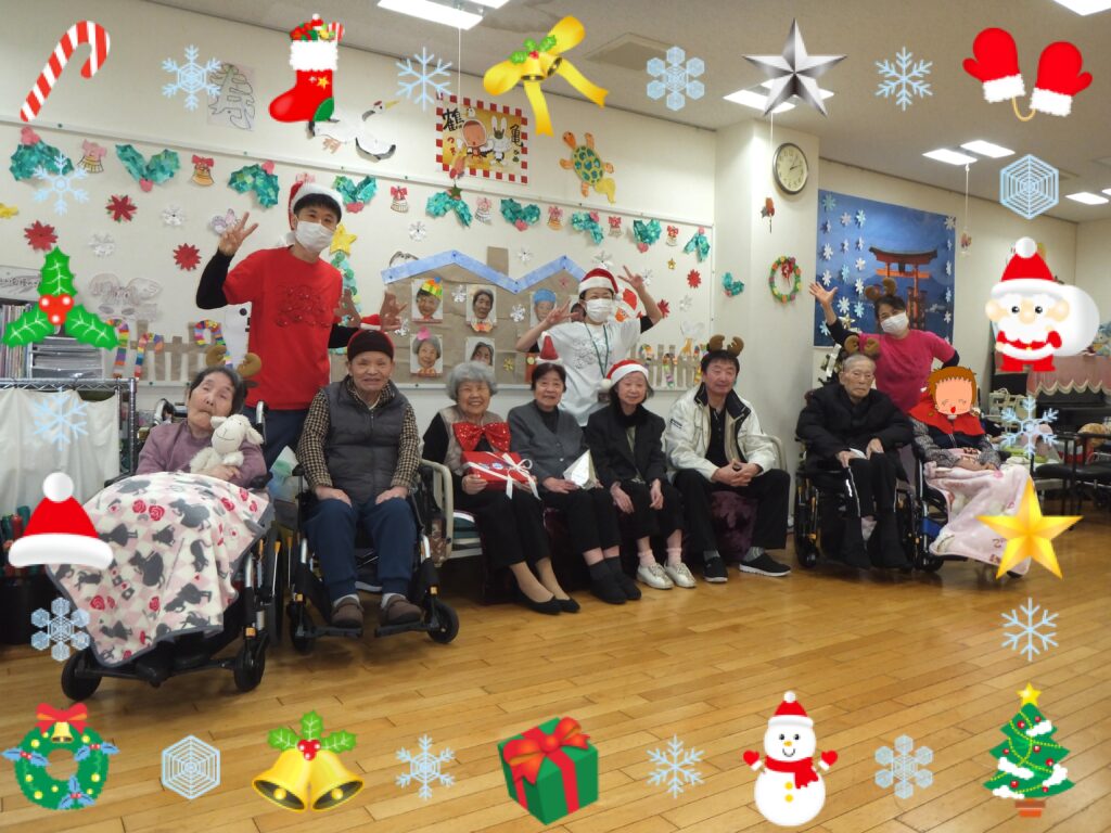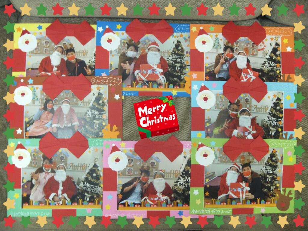 この集合写真はデイケアに貼っております。これを見る度に、皆さまが この『クリスマス会』のことを、そして楽しかった思い出として、思い出して下さることを願って・・・✨