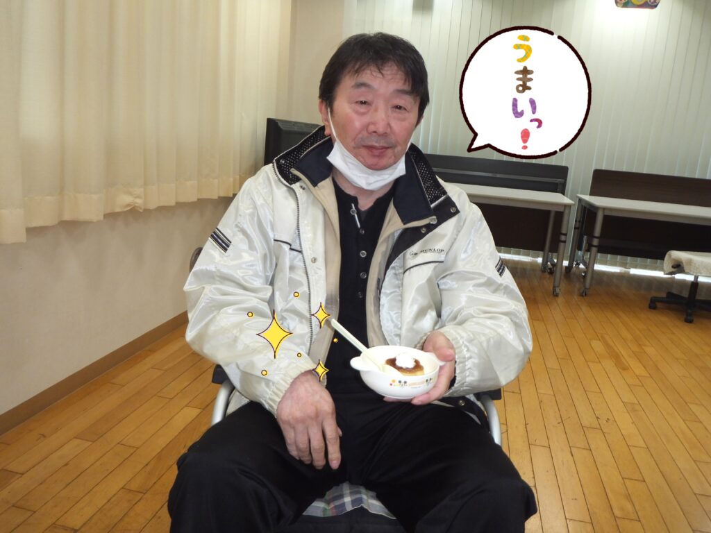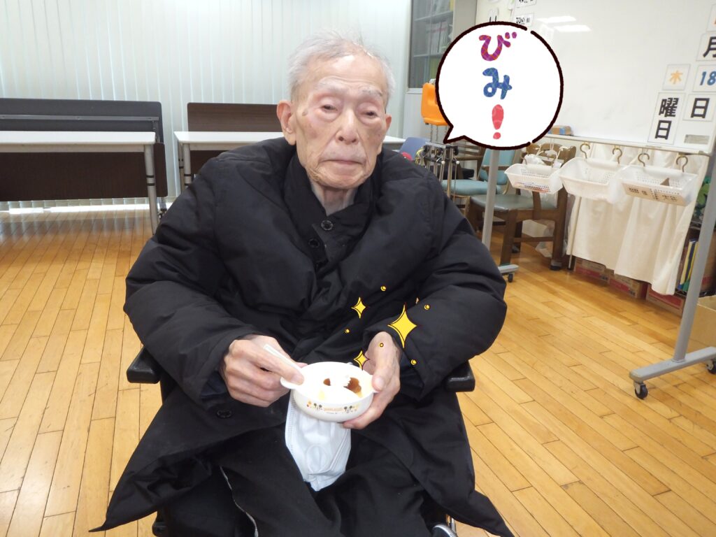 体操で身体を動かし、そしてゲームに参加したり等で皆さま少し休憩したい頃だと思います。そこで皆さま お待ちかねの『おやつTIME』です🎵