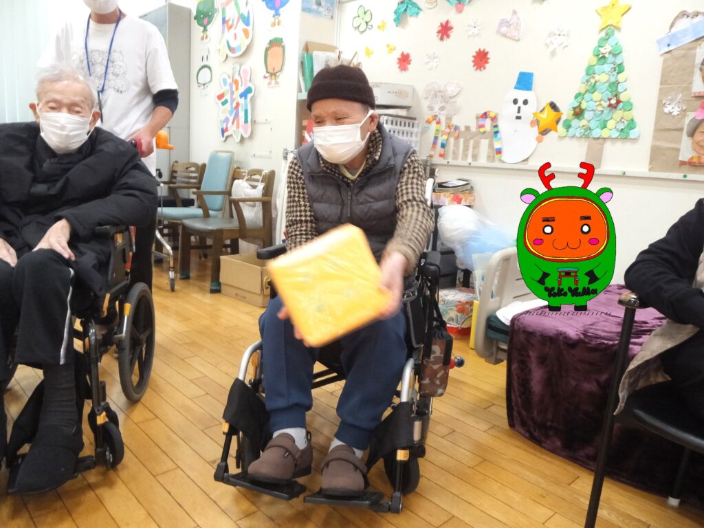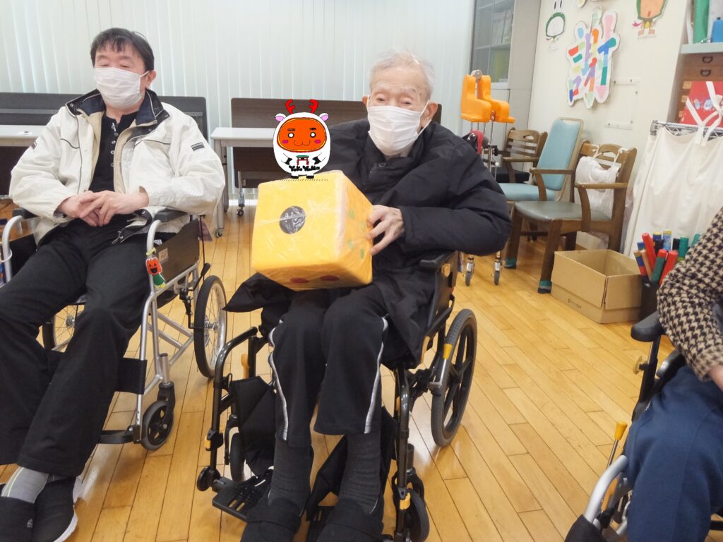 実は、この日ではなく同月23日にデイケア『ふたば』で行われる『クリスマス会』の時に、お渡し予定の利用者さまに『クリスマスプレゼントの引換券』をお渡し しました。それまで楽しみに待ってて下さいね(=^・^=)