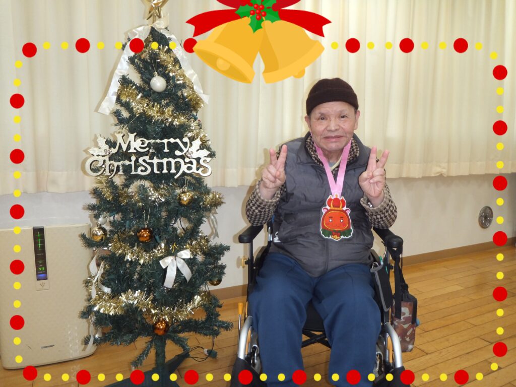スタッフお手製の『クリスマス』のメダルを贈呈させて頂きました。キラキラと輝いております✨