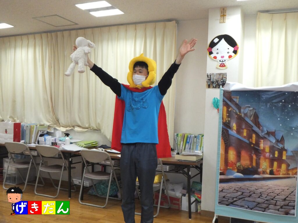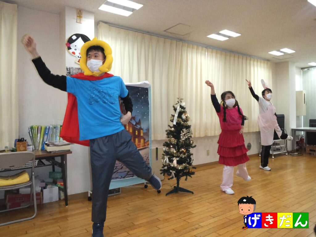 閉会式の後は、アンコールタイムで『スタッフ劇団』の登場です!今回の劇の物語は『クリスマス』がテーマでタイトルも『🍀よつばのクローバー🍀~クリスマス編~』です。今回の劇は当『よつばケアセンター』のキャラクターくん達が大暴れして おります笑 ( *´艸`)