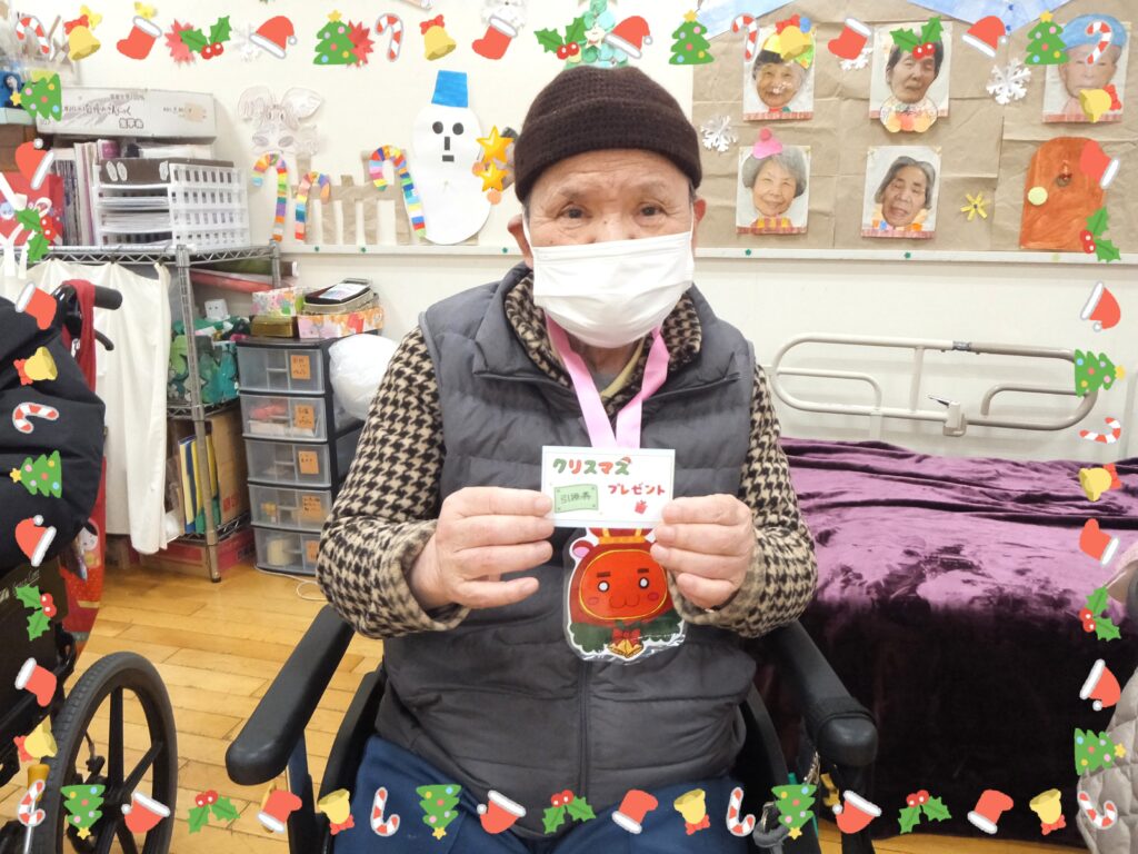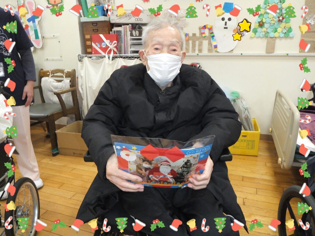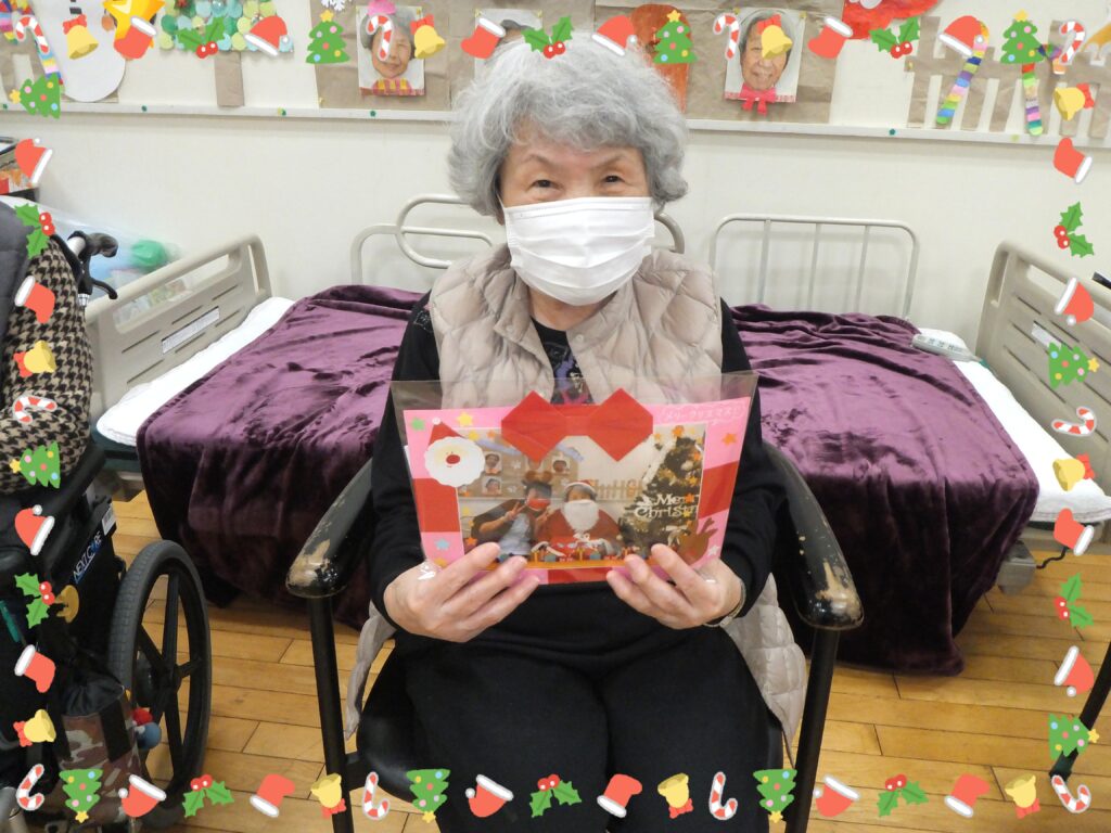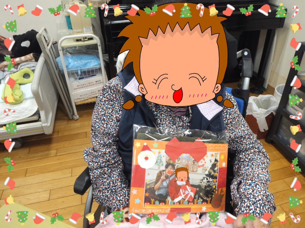 クリスマス会が終わった後、ささやかではありますが皆さまに『クリスマスプレゼント』をお渡しさせて頂きました🎁 事前に撮らせて頂いたサンタの衣装姿の写真をカードにしたものと。暖かグッズ(手袋、ネックウォーマー、ニット帽)をプレゼントしました。