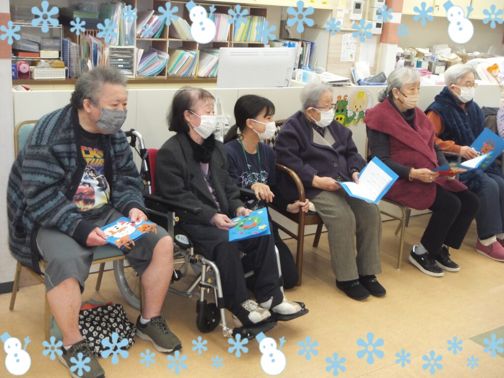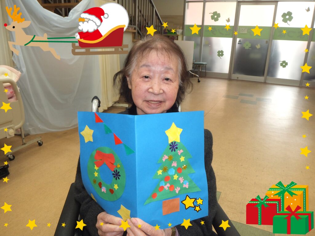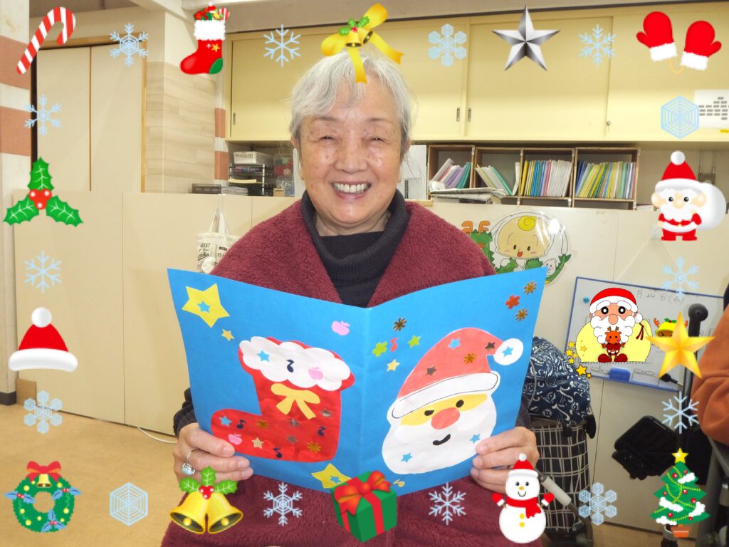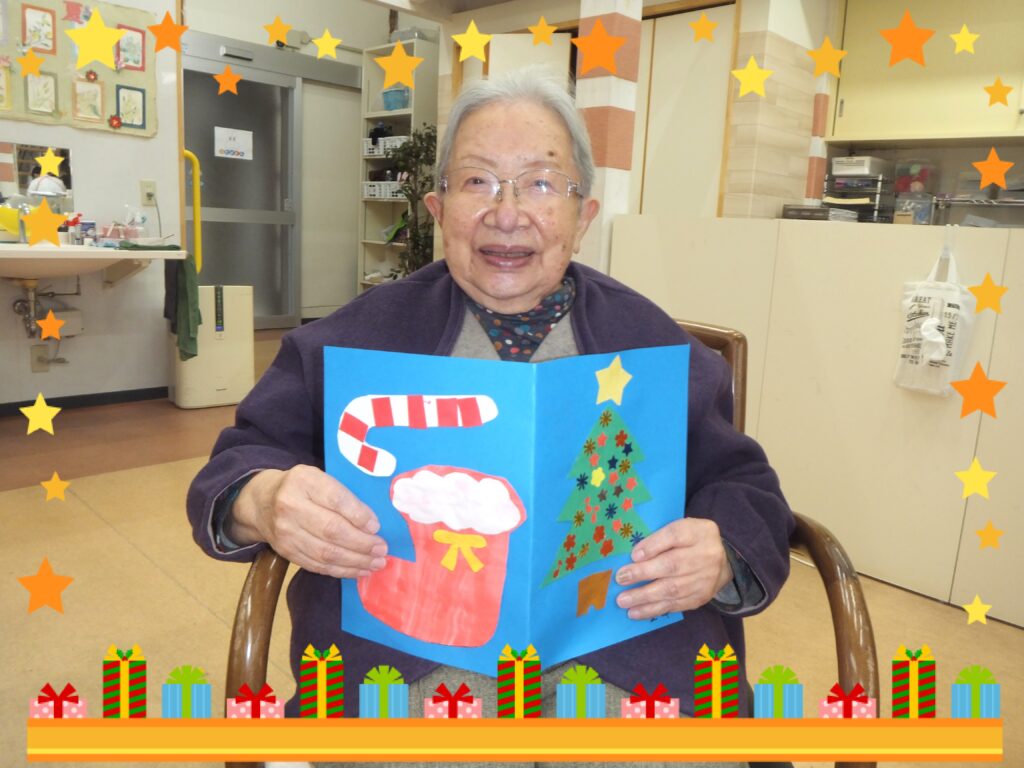 クリスマス会が終わった後には、ささやかではありますが『クリスマスプレセント』と『クリスマスカード』を お渡しさせて頂きました。皆さま とても喜んで下さいました(*^▽^*)