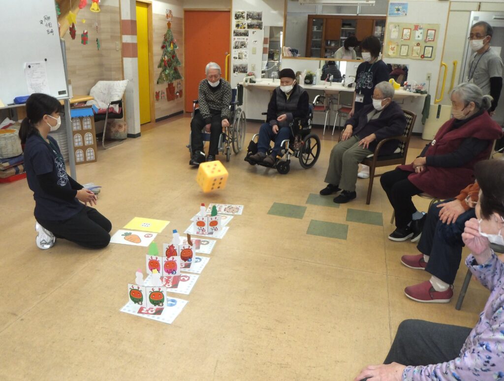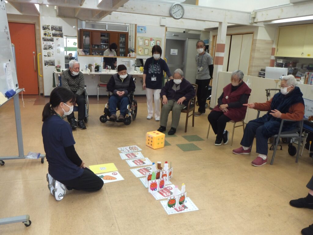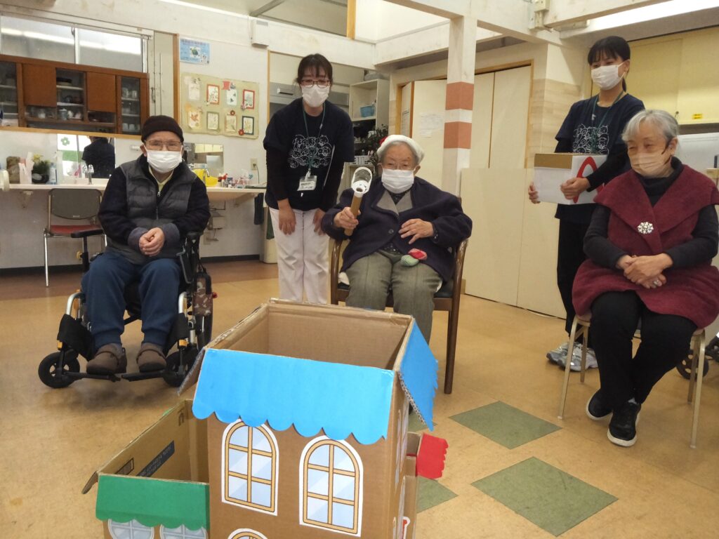 お次はゲーム(レクリエーション)の時間です。ゲーム名は『プレゼントを もらってうれしい!!』。(ゲーム内容は1/24にアップしている『よつば🎄クリスマス会🎄2025』で紹介したものと同じなため、ルールの説明は省かせて頂きます。)