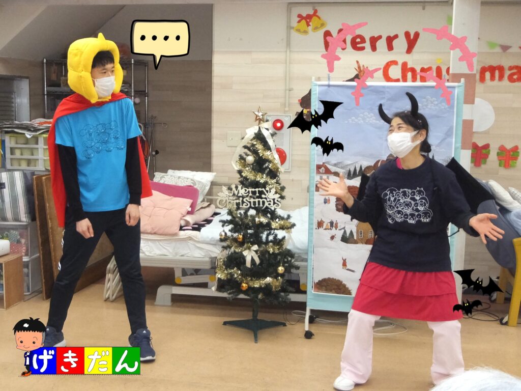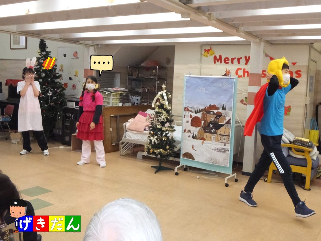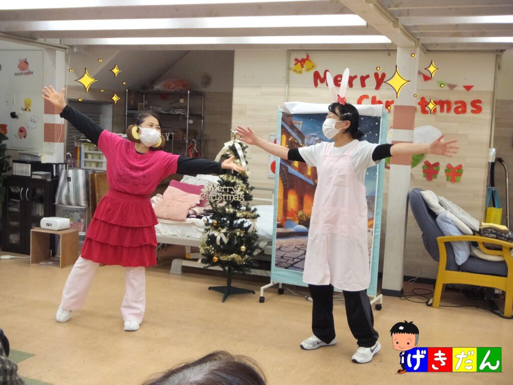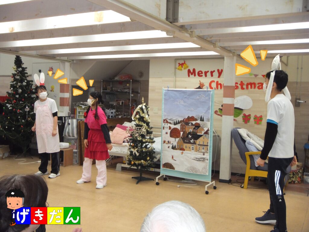 『スタッフ劇団』の皆さん、先日12月18日にもデイケア『よつば』で公演したばかりですが、デイケア『ふたば』の方がオーディエンスの数が多かったため、少し緊張したようでしたた笑( *´艸`) しかし、この公演が令和7年最後の公演だったため、やり切った感もあったようです(≧▽≦)