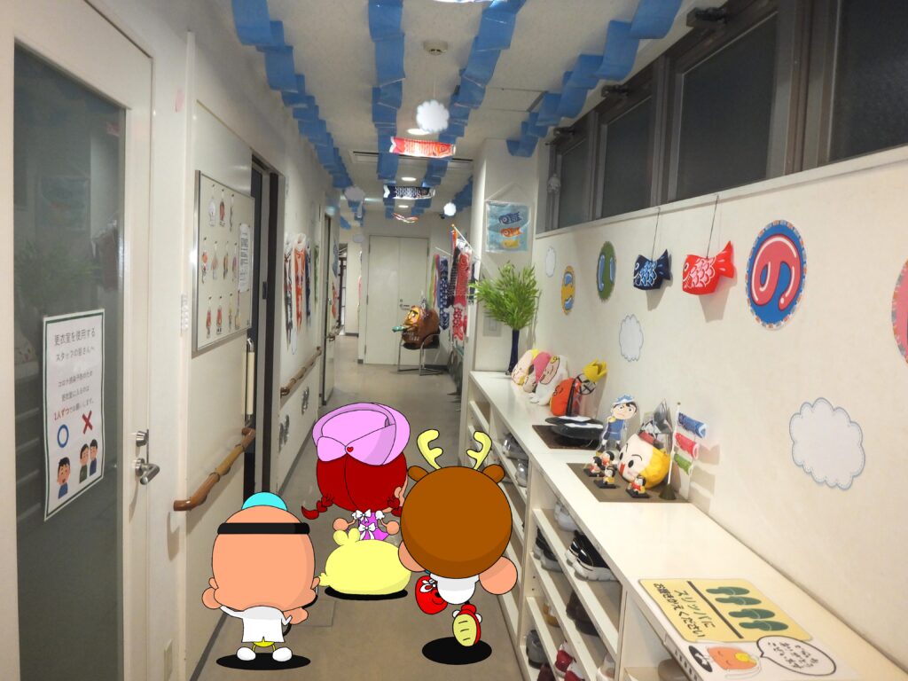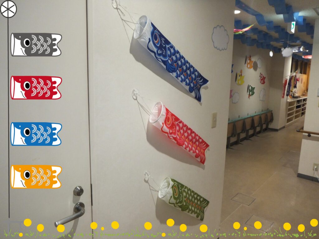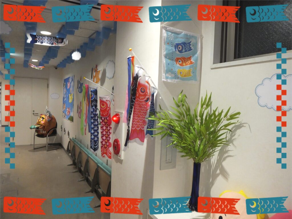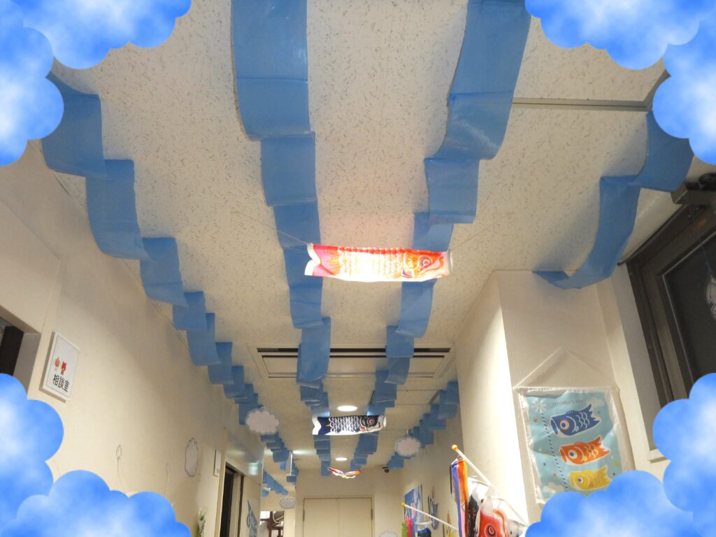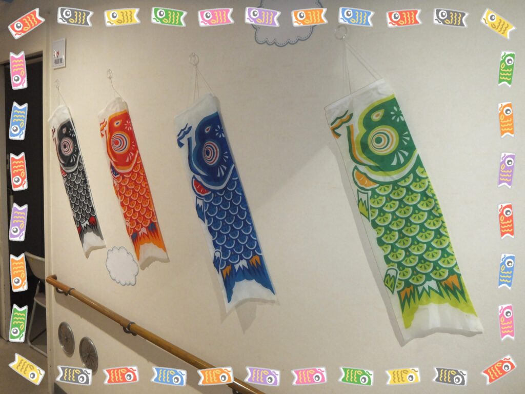 ということで当『よつばケアセンター』の廊下も桜が葉桜に変わり掛けた頃から『こいのぼり』をメインの飾りに変えました。名付けて『こいのぼりロード2026』です・・・正直去年と そう変わりはないのですが・・・💧それでも多少変わっているところも ありますので紹介させて頂きますね(*´▽`*)