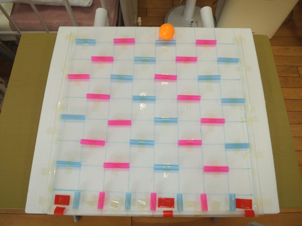 利用者さまの反応も前回よりも良かったように思えます。今回は前回のものよりも球が転がりやすいため見やすかったようです。ただ中には興奮しすぎて(←いい意味で)盤の発砲スチロールの板が割れるのではないかと心配になった場面も(*´Д`)オロオロ・・・。参加された利用者さまはやり終えたあと、笑顔になられていたので、前回のリベンジは果たせたのでは?と思います。