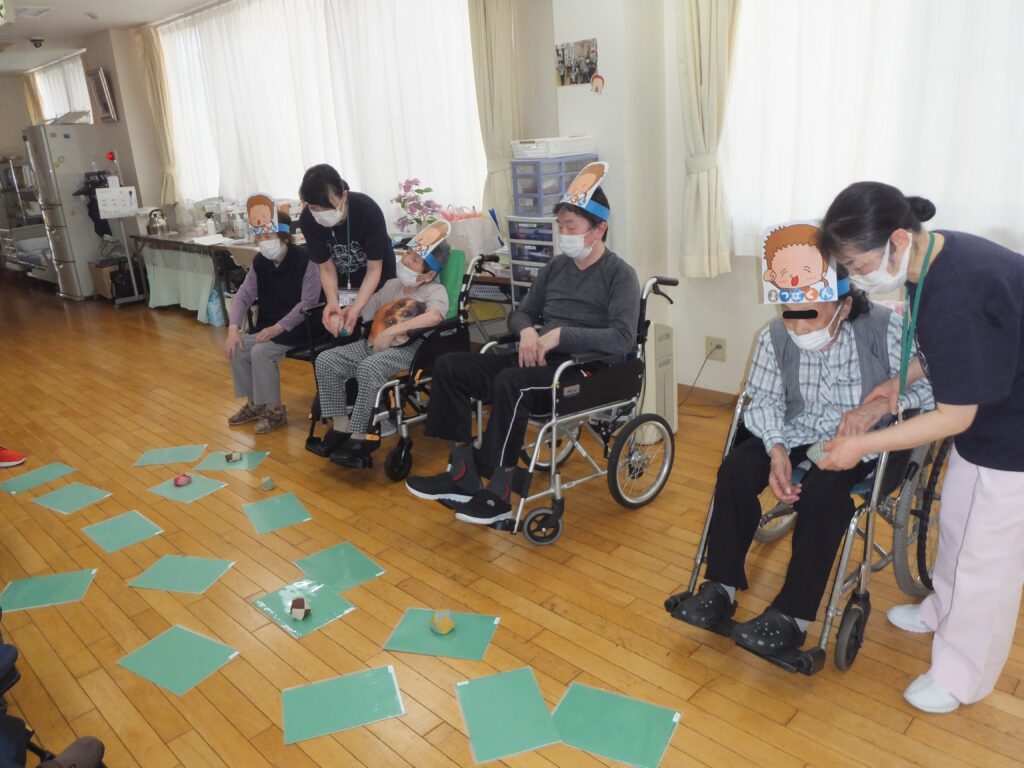 利用者さまのみなさまには、自分のチームのキャラクターのイラストを頭に被って頂きました。みなさん、とてもお似合いでした💗個人戦も良いですがチーム戦になると、チーム内で喜んだり、悔しがったりできるので一段と盛り上がりました🎶
